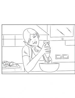 woman doing housework while talking on the phone – line art settings