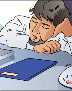 man sleeping on his desk while phone rings