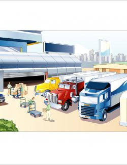 factory and trucks