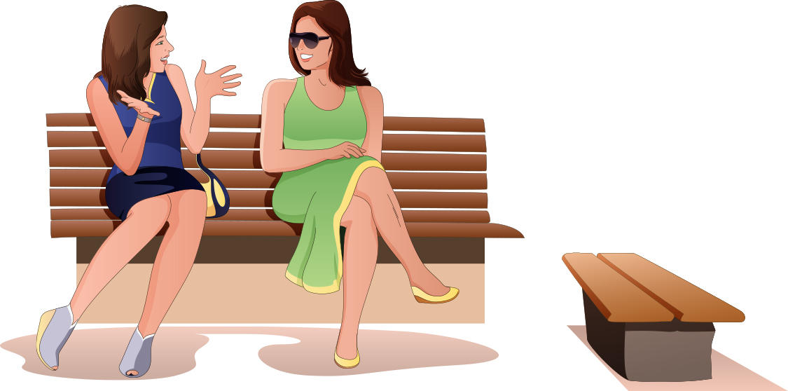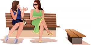 2 women chatting on bench