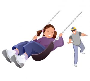 dad with daughter on swings quantity