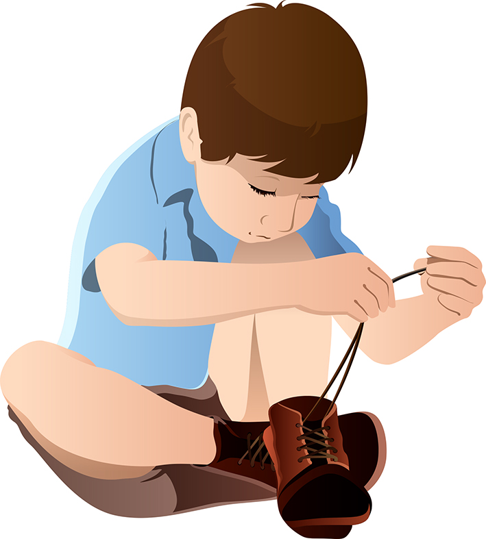 kid tying shoelaces
