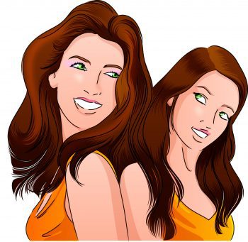 mother and daughter pausing back to back quantity