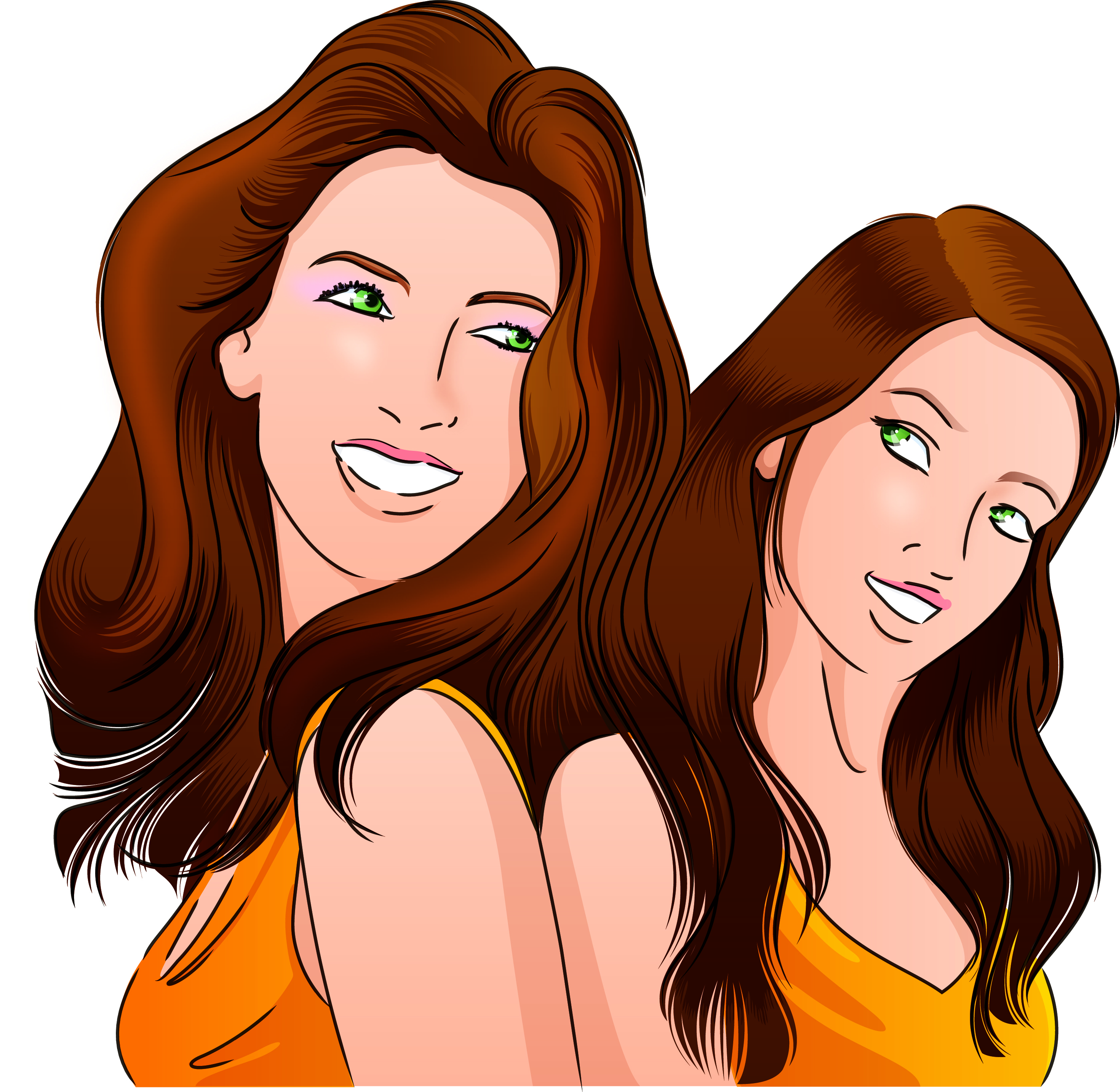/ mother and daughter pausing back to back