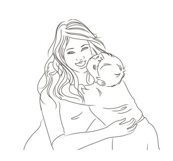 mother and kid kiss-line art