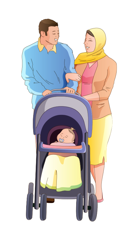 muslim arab couple with kid in stroller quantity