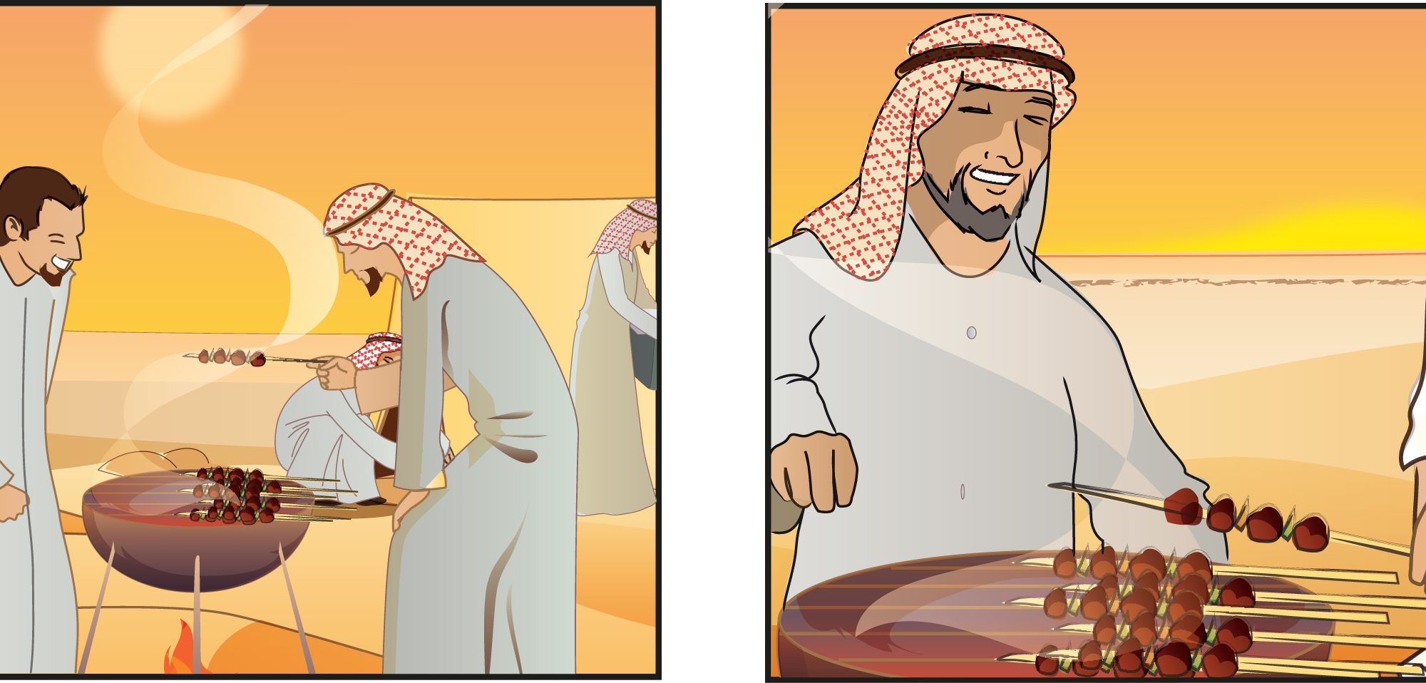 / saudi arab young men having a barbecue