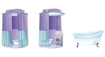 shower booth + bathtub