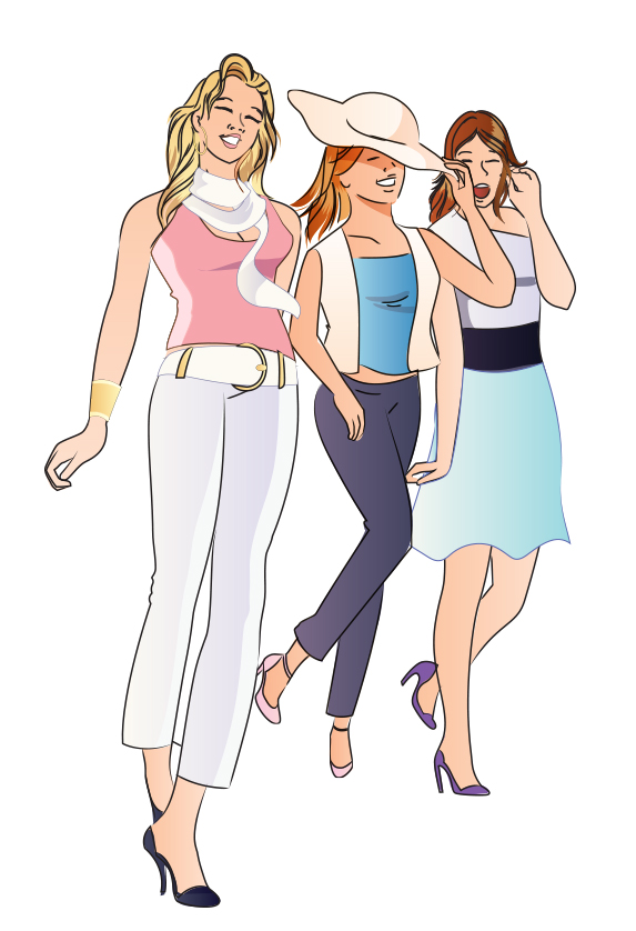 trio of girls walking quantity