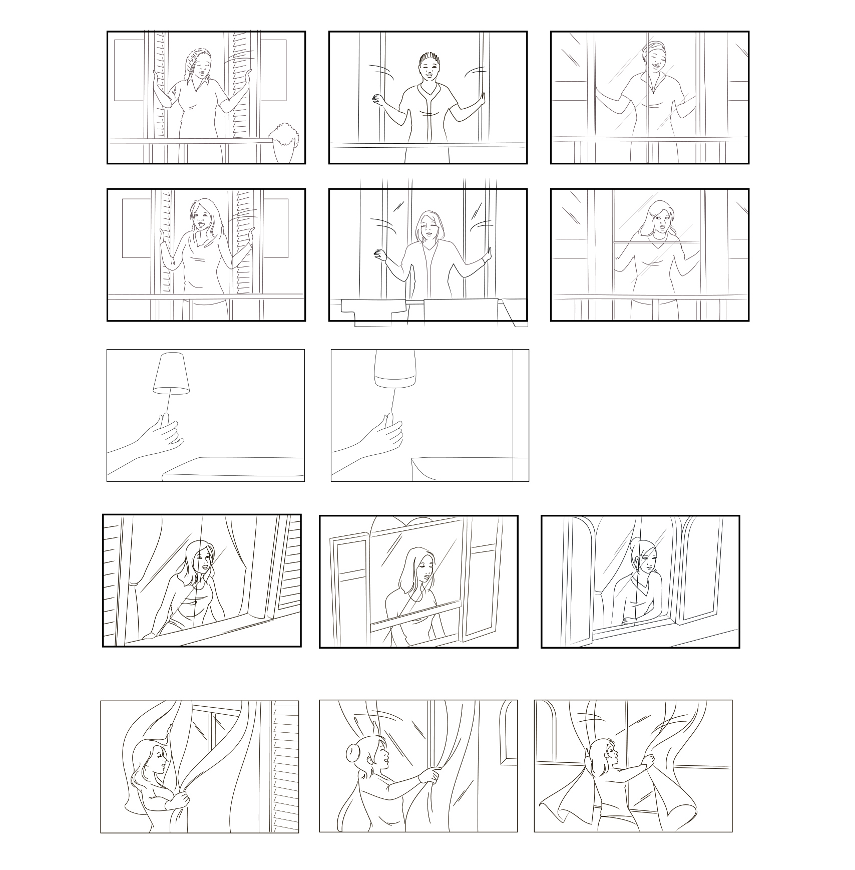 Women at their windows – vector line art