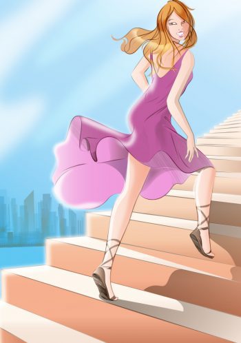 young beautiful woman climbing stairs