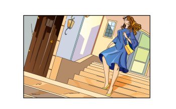 young lady on staircase low shot traditional setting quantity
