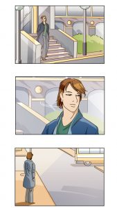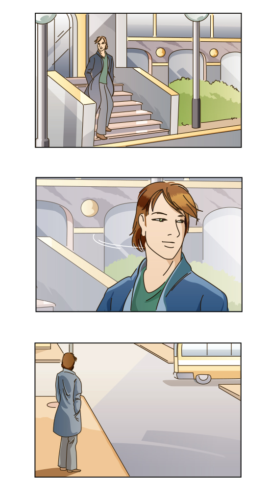 young man in coat walking down the stairs, close shot, alone on street quantity