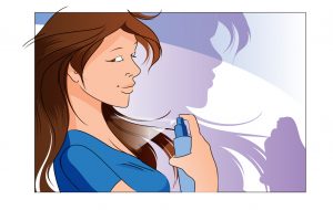 young woman spraying deodorant