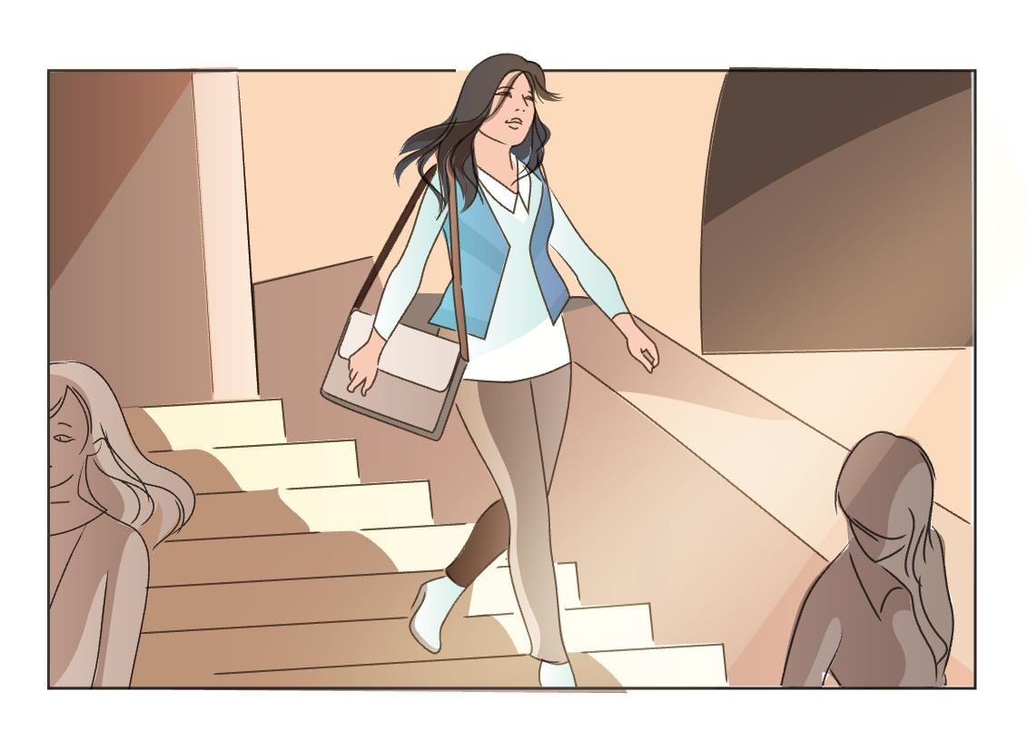 young woman walking down stairs